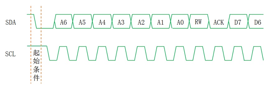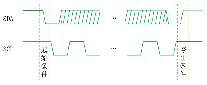 每次数据交换,总是以总线的起始条件开始,以总线的停止条件结束。总线的起始条件和停止条件匀由Master端接口产生。起始条件是SDA信号在SCL信号的高电平期间发生一个下降沿跳变,停止条件则是SDA信号在SCL高电平期间发生一个升沿跳变。 |