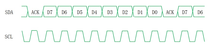 I2C总线上的数据传输是以8个数据位组成的字节为基本单位的。字节的各个数据位在总线上的传递次序是MSB在前,也就是先传高位,后传低位。每个数据位要在SCL信号的高电平期间保持稳定,数据位之间的切换发生在SCL信号的低电平期间。总线上每传送1个字节的数据,接收方要给出1个数据的应答,ACK或NACK。ACK代表要求继续传递下一个字节的数据,NACK则是表示不再需要下一个字节的数据。 |